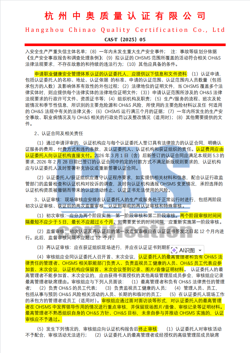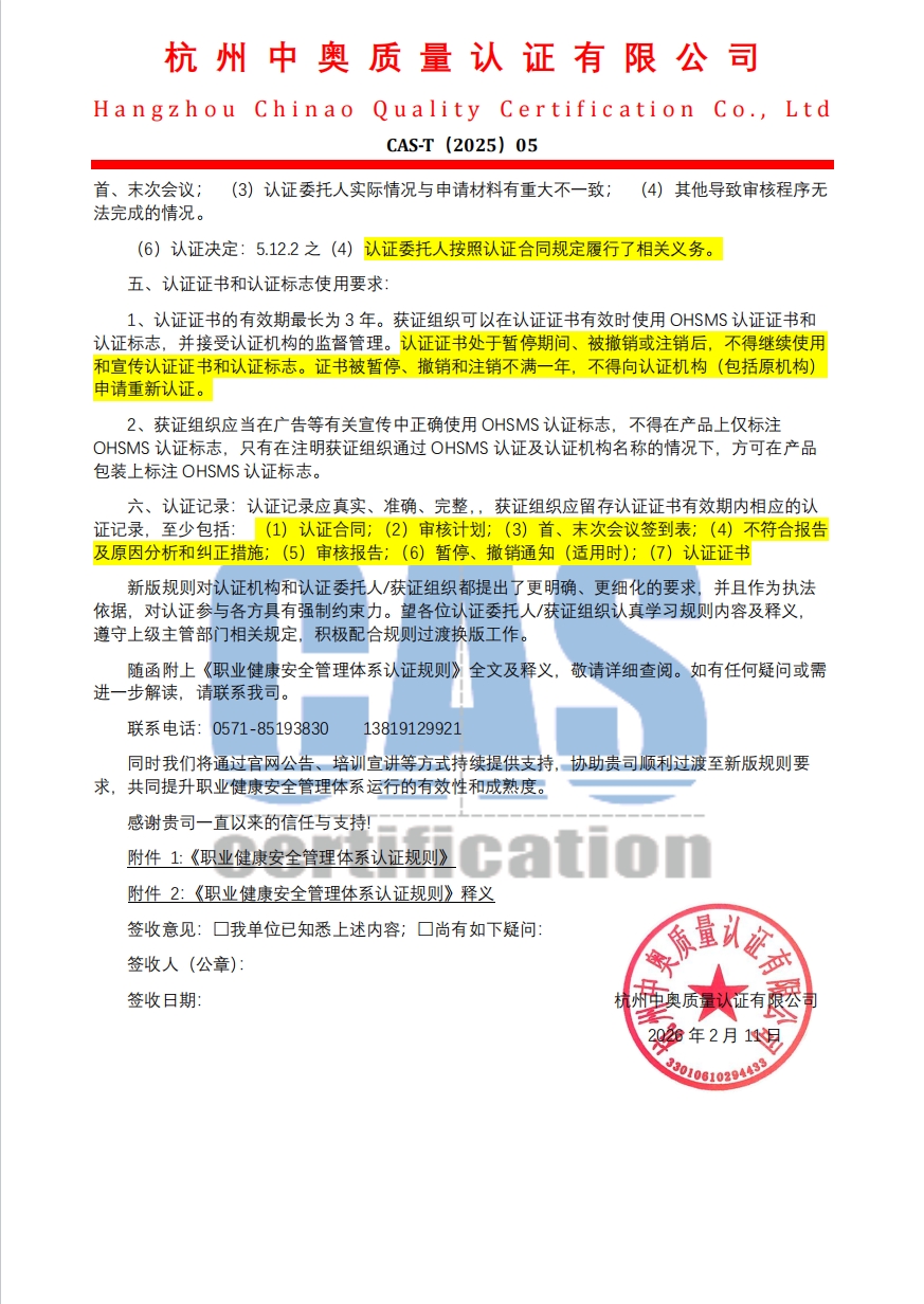 职业健康安全管理体系认证规则(2026版)客户告知函