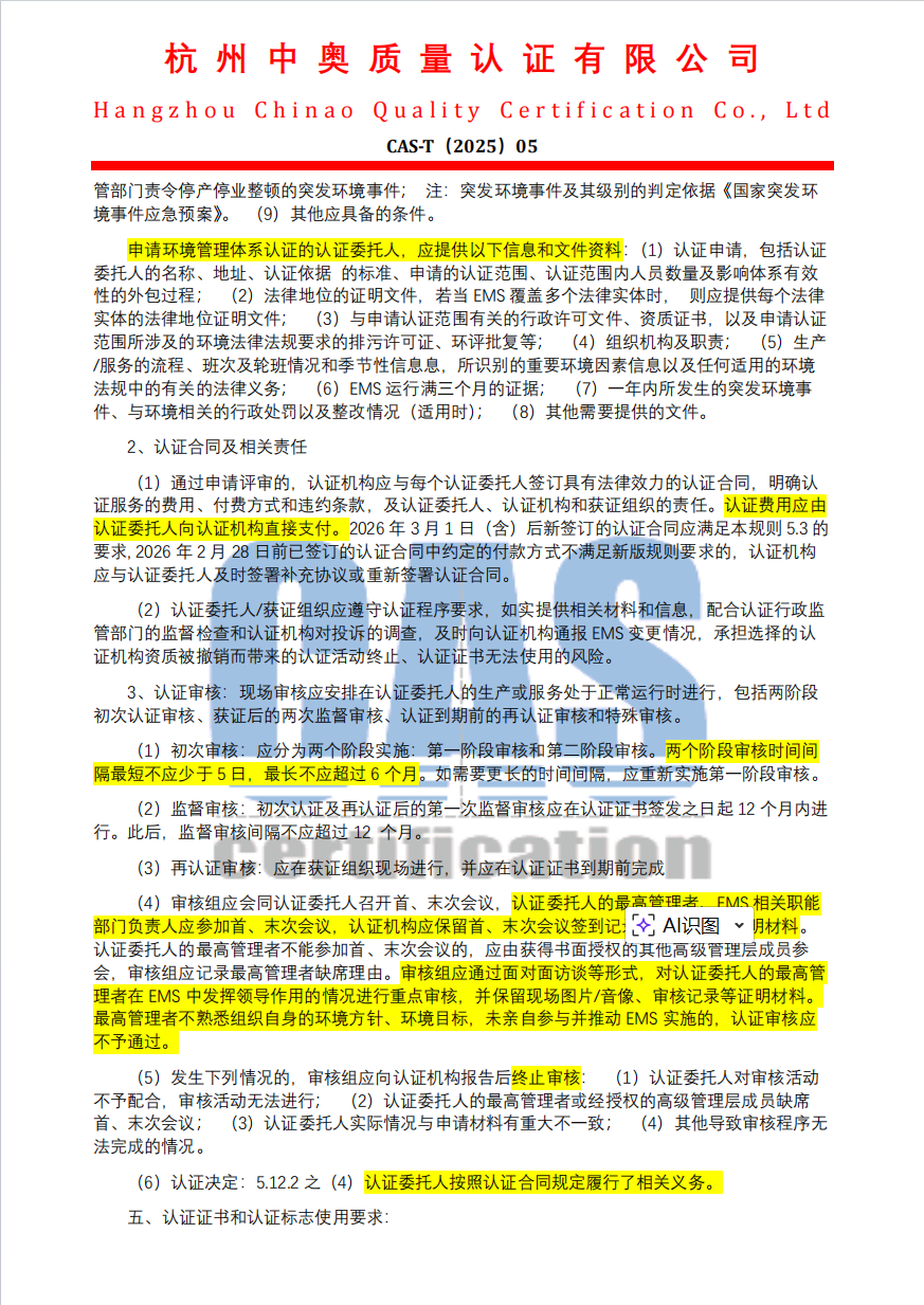 环境管理体系认证规则(2026版)客户告知函
