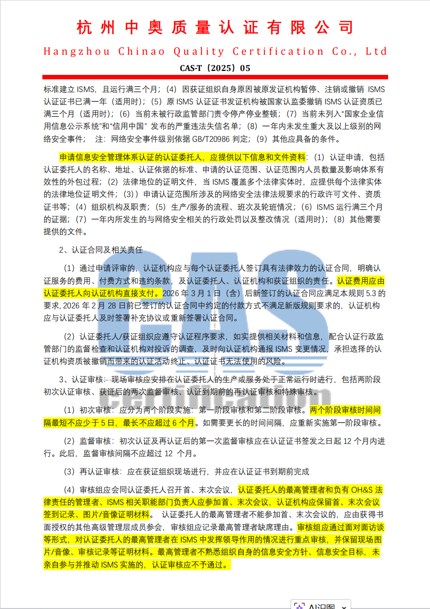 信息安全管理体系认证规则(2026版)客户告知函