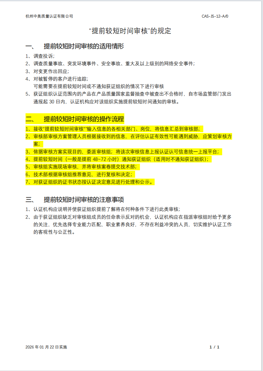 提前较短时间审核的规定